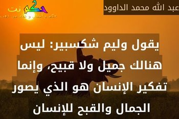 يقول وليم شكسبير: ليس هنالك جميل ولا قبيح، وإنما تفكير الإنسان هو الذي يصور الجمال والقبح للإنسان