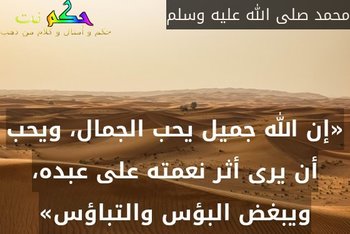 «إن الله جميل يحب الجمال، ويحب أن يرى أثر نعمته على عبده، ويبغض البؤس والتباؤس»