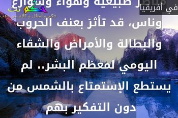 في الماضي، كان كل الواقع من مناظر طبيعية وهواء وشوارع وناس، قد تأثرَ بعنف الحروب والبطالة والأمراض والشقاء اليومي لمعظم البشر.. لم يستطع الإستمتاع بالشمس من دون التفكير بهم -في أفريقيا
