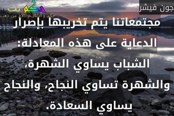 مجتمعاتنا يتم تخريبها بإصرار الدعاية على هذه المعادلة: الشباب يساوي الشهرة، والشهرة تساوي النجاح، والنجاح يساوي السعادة.