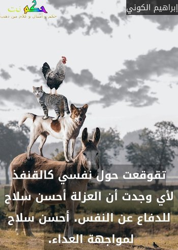 تقوقعت حول نفسي كالقنفذ لأي وجدت أن العزلة أحسن سلاح للدفاع عن النفس. أحسن سلاح لمواجهة العداء.
