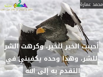 أحببت الخير للخير، وكرهت الشر للشر، وهذا وحده يكفيني في التقدم به إلى الله