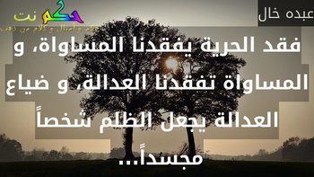 فقد الحرية يفقدنا المساواة، و المساواة تفقدنا العدالة، و ضياع العدالة يجعل الظلم شخصاً مجسداً…