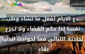دع الايام تفعل ما تشاء وطب نفسا إذا حكم القضاء ولا تجزع لحادثة الليالي فما لحوادث الدنيا بقاء -الشافعي