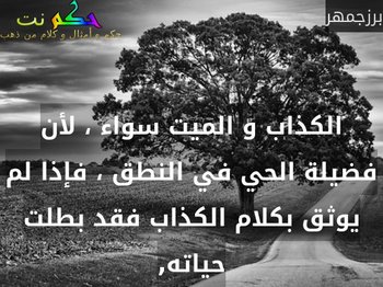 الكذاب و الميت سواء ، لأن فضيلة الحي في النطق ، فإذا لم يوثق بكلام الكذاب فقد بطلت حياته,